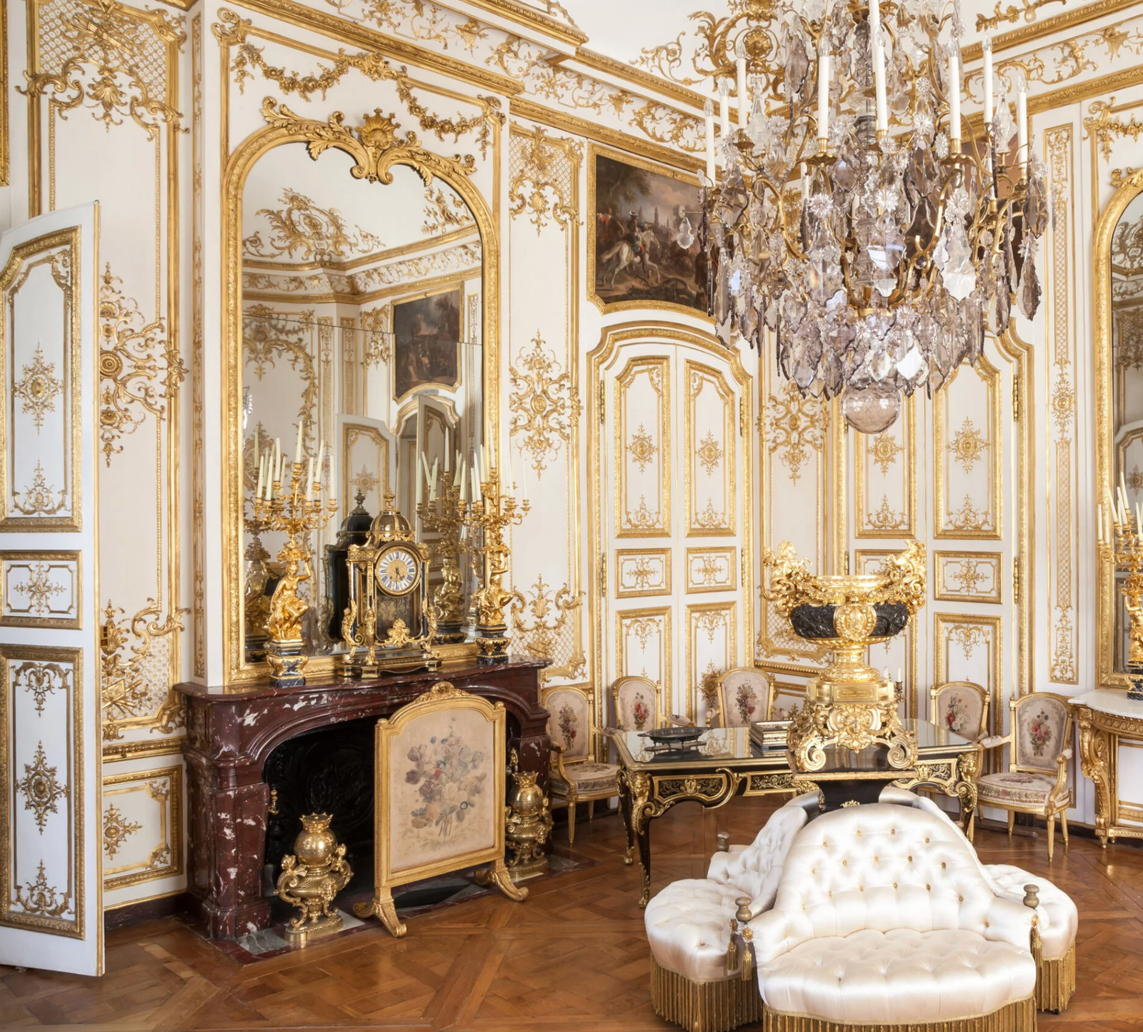 In 1844, Lami was entrusted with the redesign of the apartments of the Ducs de Nemours and d’Aumale, sons of Louis-Philippe, at the Tuileries Palace. With access to Garde-Meuble de la Couronne and the Versailles collection, he promotes a return to the 18th century. Won over by his work, the Duc d’Aumale asked him that same year to design the interiors of his own apartments and those of his wife at the Château de Chantilly. Echoing the Orléans legacy and the history of the château, Lami combined 18th-century furniture and objets d’art with contemporary reproductions, set within paneled rooms featuring white-and-gilt boiseries with rocaille moldings. For the Salon des Dames, he selected armchairs supplied by Georges Jacob (1739–1814) for the King’s Salon des Jeux at Saint-Cloud in 1787, as well as a Louis XVI clock by André Hessen (1745–1805), paired with contemporary reinterpretations of the Louis XV and Louis XVI styles. In doing so, Lami created one of the earliest historicist interiors inspired by the 18th century, inaugurating a taste that would later reach its height in the interiors of Empress Eugénie.