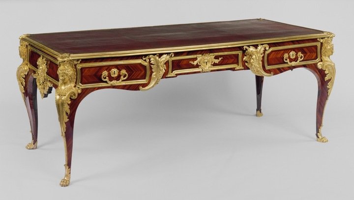 Charles Cressent (attribué à), Bureau plat aux espagnolettes, vers 1720–1725, Los Angeles, J. Paul Getty Museum (inv. 67.DA.10)