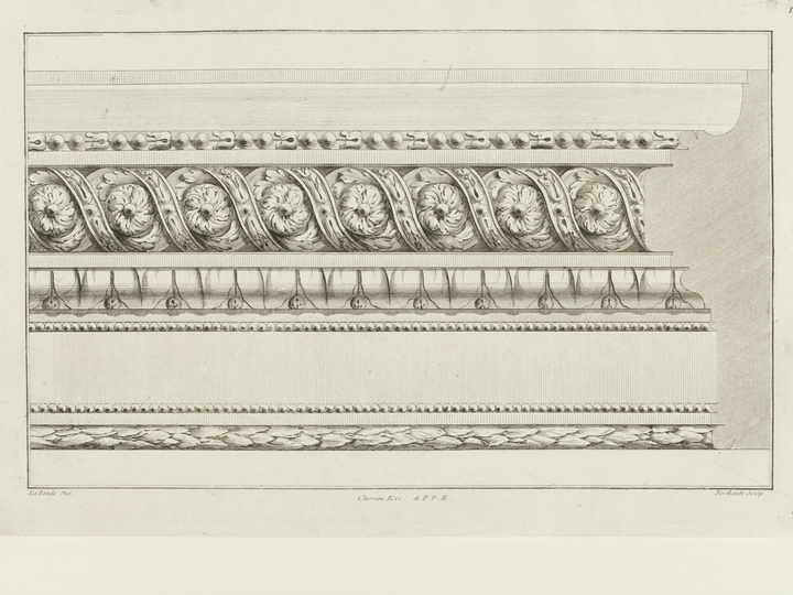 Richard de Lalonde (dessinateur), Berthault (graveur), Chéreau (éditeur), [Frises], in Oeuvres diverses de Lalonde décorateur et dessinateur, vers 1775–1789, Londres, Victoria & Albert Museum (inv. E.5175–1910)